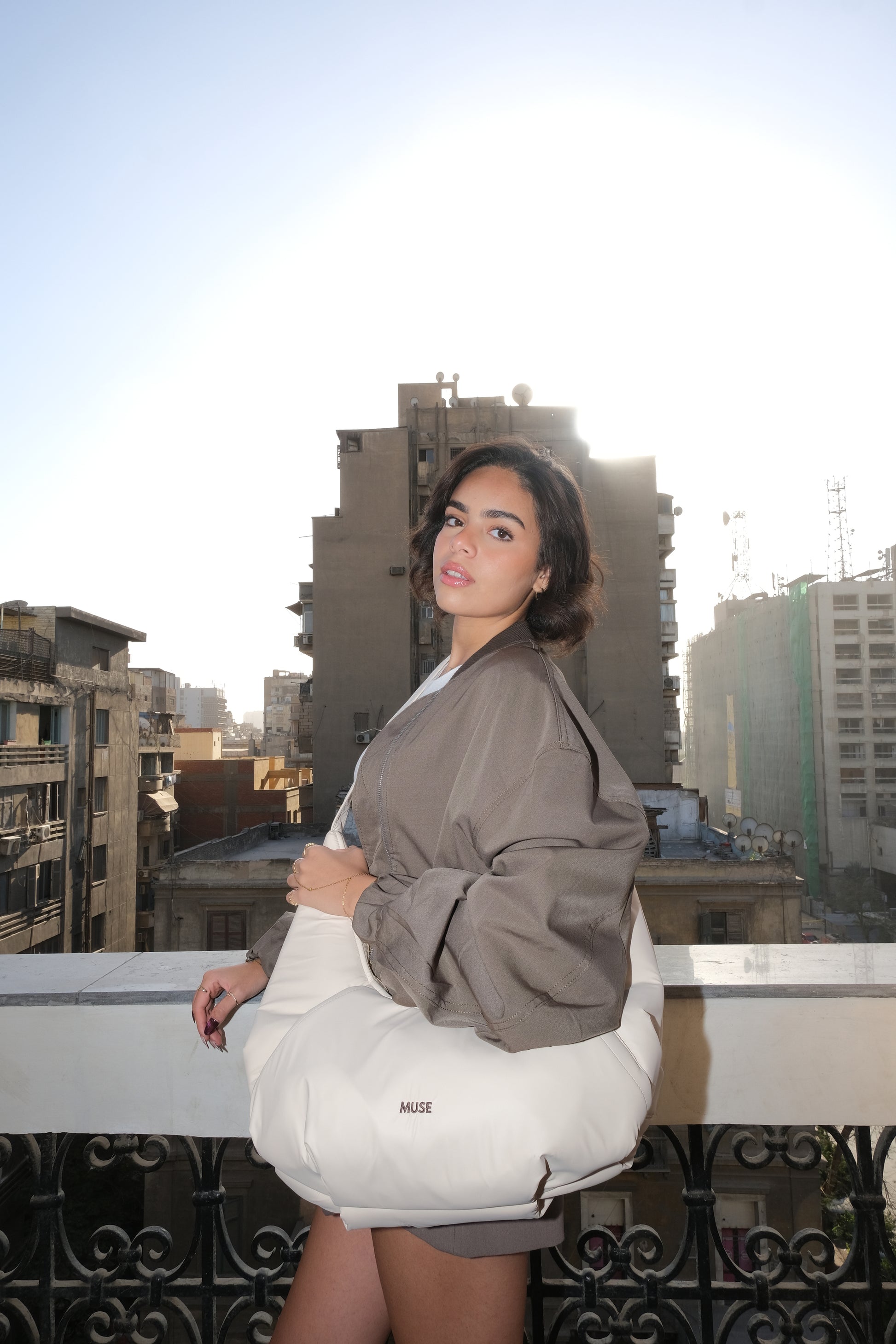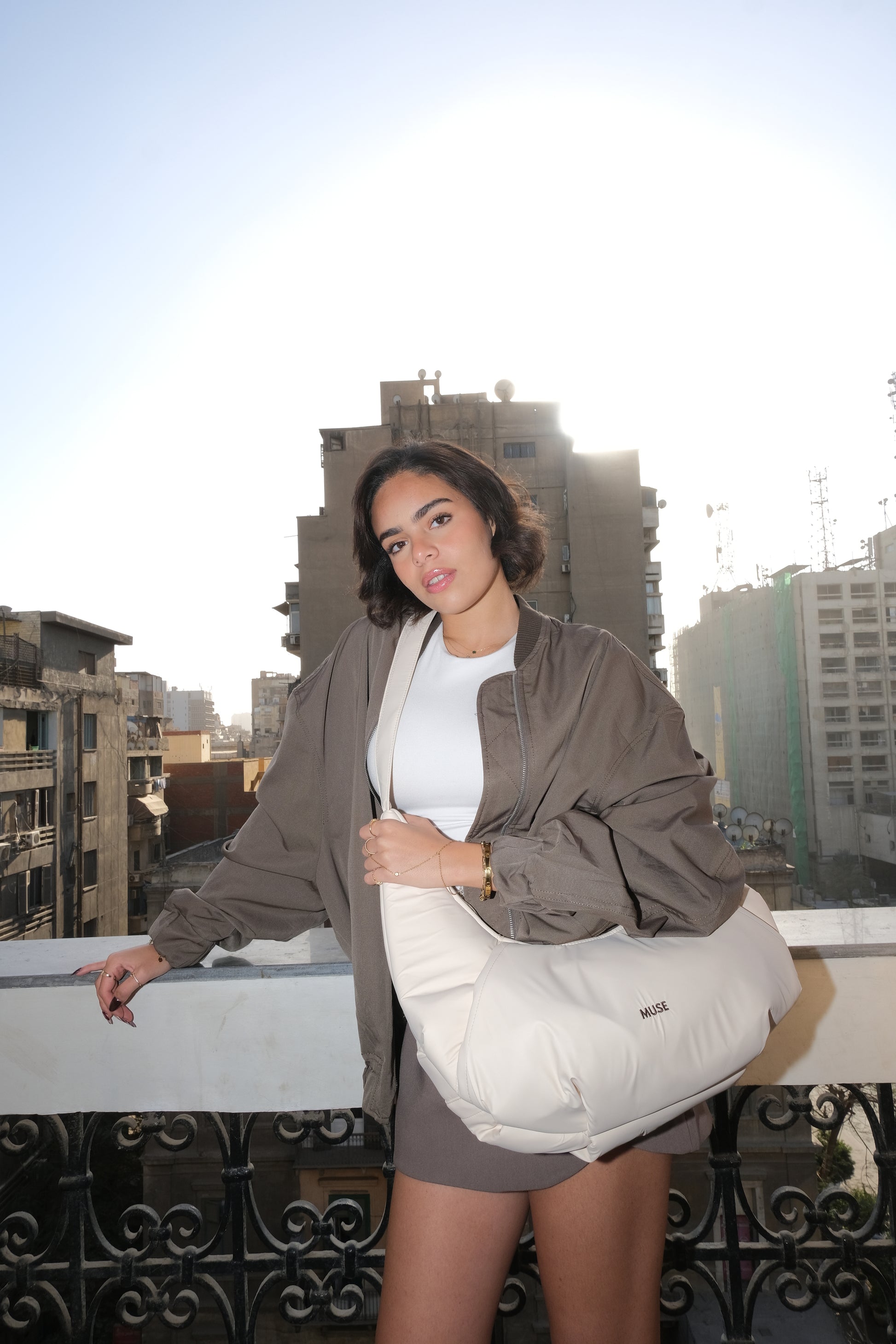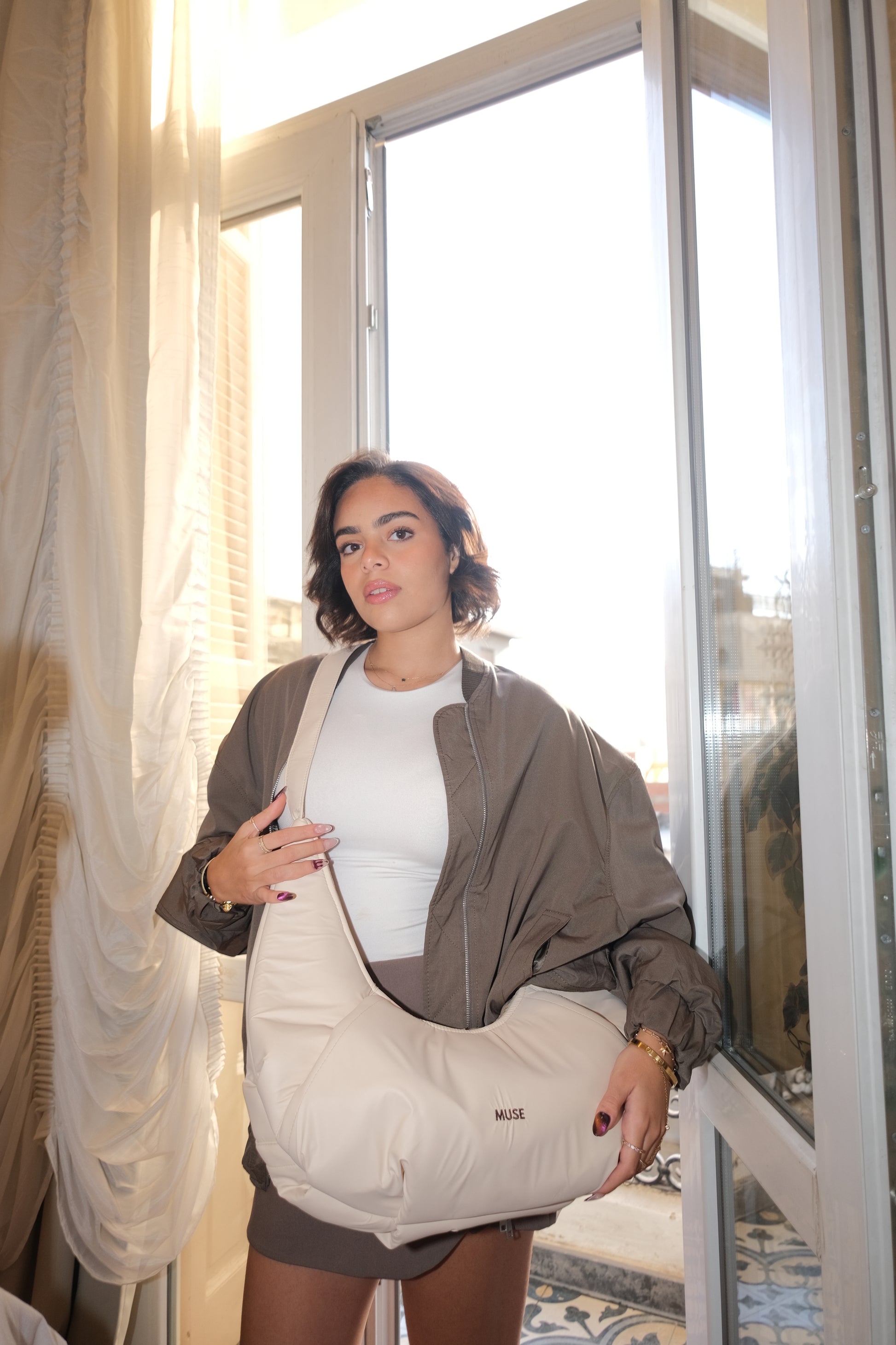 The croissant Bag in latte